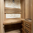 背面壁には、優れた耐久性を持つ装飾性の高いカルチャード・ストーンを採用しています。汚れにも強いためお手入れも簡単です。よりサウナ空間に近づけるための木デザインへの変更も可能です。