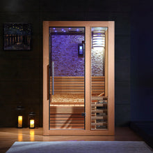 フレームレスのガラスドアはボックスサウナをスタイリッシュに演出します。