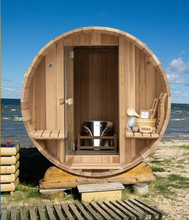 電気ストーブ付属で手軽に楽しむ4〜6人用バレルサウナ