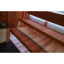 木材にはレッドシダーを使用。高い耐候性、高い耐久性、そして自然の防虫効果により、屋外での長期使用に最適な木材です。また、レッドシダーが放つ暖かみのある色合いや美しい木目でサウナ体験を一層リラックスさせ、深い安らぎをもたらします。