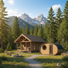 お庭に本格的なサウナ体験をもたらす前室付きのサウナ小屋。コンパクトながら着替えスペースや休憩エリアとして使える前室を完備し、より快適なサウナライフを実現します。円形天井の設計により、ロウリュの熱が最も効率的に循環し、豊かな木の香りとともに極上のリラクゼーション体験をお届けします。家族や友人との特別な時間を演出する、ご自宅のお庭に設置できる本格派サウナです。