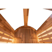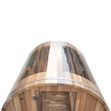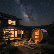 天井部にクリア強化プラスチックを採用した開放感を感じるバレルサウナ。昼は青空や雲の流れを、夜は美しい星空や夜景を眺めながら、自然と一体化したフィンランド式ロウリュサウナをお楽しみいただけます。1人から8人まで対応する豊富なサイズバリエーションで、カップルでの特別な時間から家族や友人との楽しいひとときまで、様々なシーンで活用できる家庭用サウナの新しいスタイルです。