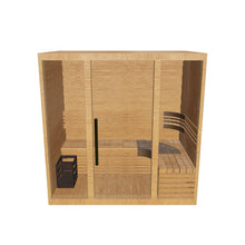 2~3人で同時に利用可能な屋内型家庭用サウナ。ガラスデザインによって窮屈さを感じない開放的な空間で、本格的なロウリュ体験を楽しめるフィンランド式を採用。ご自宅のリビングや空きスペースをスパのようなリラクゼーションエリアに変えることができます。木目を活かしたシンプルで高級感のあるデザインで、どんなインテリアにも調和し、上質な空間を演出します。