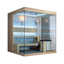 3~4人で同時に利用可能な屋内型の高級サウナ。強化ガラスを採用した開放的な設計で、窮屈さを感じることなく本格的なロウリュ体験を楽しめるフィンランド式を採用。ご自宅のリビングや空きスペースをスパのようなリラクゼーションエリアに変えることができます。木目を活かしたシンプルで高級感のあるデザインで、どんなインテリアにも調和します。家族や友人との使用はもちろん、ジムやホテル、宿泊施設などの事業用途にも最適なサウナです。