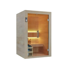 当店人気No1の屋内サウナです。1人で心ゆくまでリラックスすることができ、ロウリュもできるフィンランド式を採用。木材を活かしたシンプルで洗練されたデザインが特徴で、どんな室内インテリアにも自然にマッチします。コンパクトながら本格仕様で、あなたの居住空間をスパのようなリラクゼーションエリアに変えることができます。間接照明による上質な空間演出で、家庭での特別なリラックスタイムを提供します。