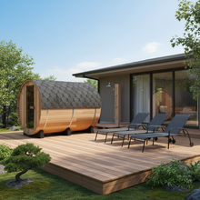 2人から最大10人まで対応する豊富なサイズバリエーションを誇る、家庭用バレルサウナのスタンダードモデルです。木材の自然な色合いと肌触りを活かしたシンプルなデザインで、お庭に美しく調和します。樽型フォルムの優美なカーブが特別な存在感を演出し、家族や友人との楽しいサウナタイムを彩ります。コンパクトなサイズから大人数対応まで選択でき、自宅に設置しやすい屋外サウナです。